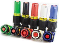 These terms are used by Phase 3 and ITT Veam on their high-current connectors.The source is considered the half of the connection from which the power is sourced; or the half supplying the electrical power. In an emergency power application, the generator is the source and would be fitted with Panel Source (panel-mount) connectors, a Panel Source Powersafe Box, or Line Source (inline) connectors on pigtails. The drain is the half of the connection which drains the power from the source. In the same emergency power application described above, the network receiving the emergency power supply is the drain and would be fitted with Line Drain connectors, Panel Drain connectors or a Panel Drain Powersafe Box.